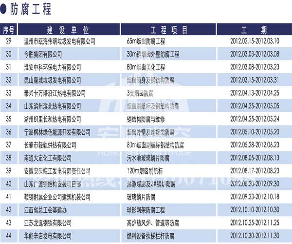宏順建設工程有限公司是國家批準成立的專業(yè)高空作業(yè)企業(yè):承攬過(國內.國外)煙囪新建、煙囪防腐、磚煙囪新建、煙囪改造、煙囪維修、煙囪脫硫防腐、煙囪拆除加高、煙囪滑膜等高空作業(yè)工程。具有“不搭腳手架 、 不需要停產(chǎn)”施工特點。